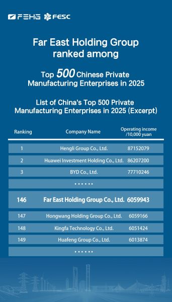 Warm congratulations to Far East Holding Group on being honored as one of the "Top 500 Private Enterprises in China" and the "Top 500 Private Enterprises in China's Manufacturing Industry"! Despite the long journey, our original aspiration remains unwavering. Far East will continue to forge quality with craftsmanship and lead the future with innovation!