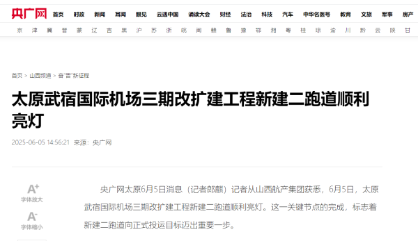 下一步,山西航空產(chǎn)業(yè)集團(tuán)有限公司將統(tǒng)籌各參建單位,加強(qiáng)與民航行業(yè)主管部門(mén)對(duì)接,全力推進(jìn)校飛、試飛及驗(yàn)收工作,確保新建二跑道順利投運(yùn),助力太原打造現(xiàn)代化區(qū)域航空樞紐,推動(dòng)山西民航事業(yè)高質(zhì)量發(fā)展再上新臺(tái)階。